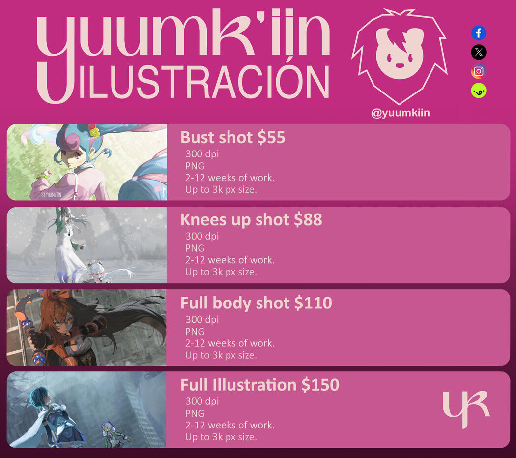 What are your do's and don'ts? I do most of characters and illustrations from chibis to mecha except for NSFW child and animal looks-like, meaning not minors, minors looking or real animal suggestive situations.What about furry? I do furry too.Can you do a commission art with soft nsfw that contains ''Ecchi''? Nudity and ''ecchi'' it's okay.I apply the Rush order option. This has an additional cost and the price depends in the complexity of the order. The rush order has a priority to finish in the shortest time possible or in the time established by the client.